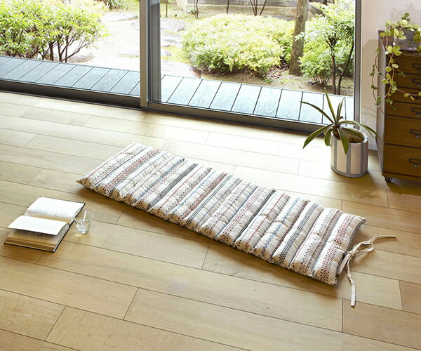 送料無料 インド綿ロングクッションごろ寝クッション 長座布団 ふんわり ぽこぽこ セポ レッド クッション お昼寝 ごろ寝マット 子供 赤ちゃん おしゃれ かわいい 北欧